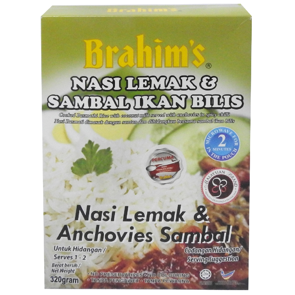 Brahims Nasi Lemak Anchovies Sambal 320g - Tesco Groceries. The chicken and mutton that are used are boneless skinless lean meat giving consumers great value. Good news for food lovers out there.