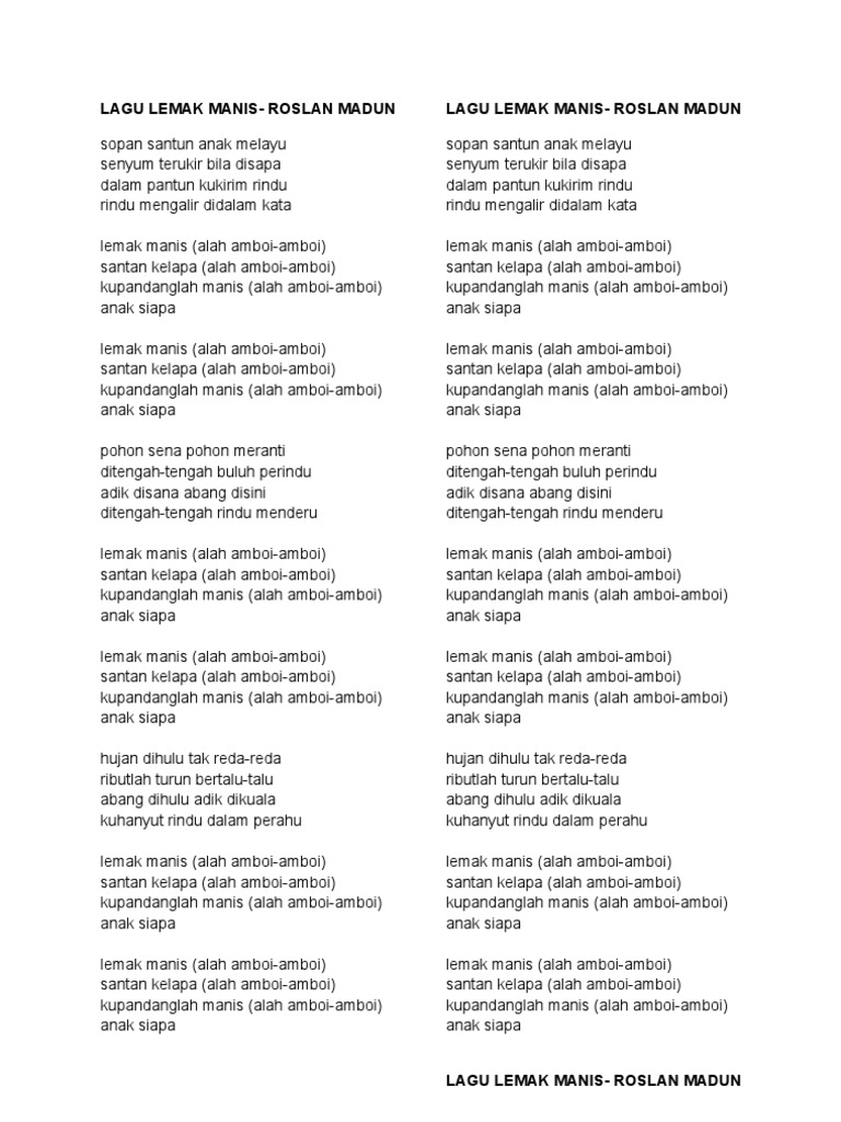 Dalam pantun ku k. Roslan madun boleh dihubungi melalui. Download Lemak Manis Mp3 Mp4 3gp Flv Download Lagu Mp3 Gratis.